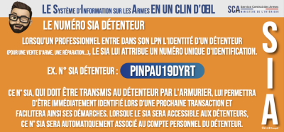 Depuis début 2021, les acquéreurs d’armes déclarables se voient attribuer un numéro SIA lors de leur première transaction après que l’armurier a accompli les formalités à partir de son Livre de Police Numérique. Ce dernier va mettre environ 15 mn pour cette création. Puis, lors d’un achat ultérieur, il suffira de communiquer à l’armurier ou au courtier le numéro de SIA pour que la formalité soit effectuée en quelques clics. Si l’acheteur a oublié son numéro de SIA, l’armurier pourra le retrouver à condition d’utiliser la même logique que le premier armurier en respectant les traits d’union et les caractères accentués. Si malgré tout, il tente de recréer un deuxième compte SIA pour son acheteur, alors le système bloquera au numéro de pièce d’identité qu’il repérera en doublon.