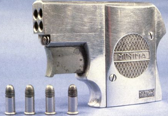 Le Minima est un pistolet à répétition, à percussion annulaire, librement inspiré par le Derringer à percuteur rotatif développé par Sharp à la fin du XIXème siècle.