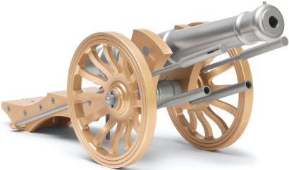Exemple de maquette avec ce canon qui a le visuel d’un canon d’époque avec une haute technicité contemporaine.