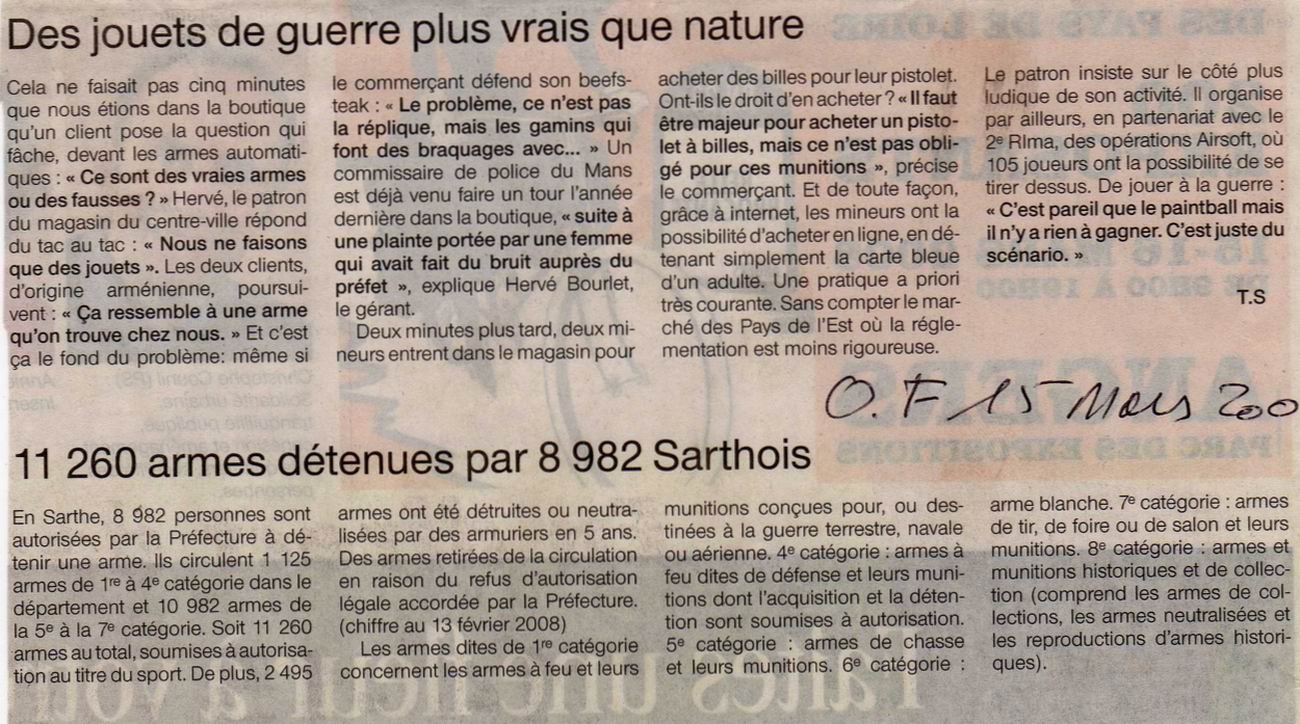 Accueil > Dossiers pratiques, études etc… > Médias, actualité et communication sur les armes > Presse & armes (articles, émissions…) > Ouest France et le Maine Libre de la Sarthe