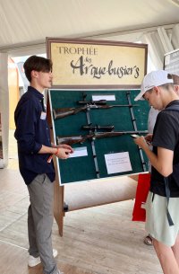 On y trouve tout, absolument tout ce qui touche de près ou de loin ce domaine. Des « villages » entiers sont dédiés à la race canine, aux artisans couteliers, aux vêtements de chasse et de sport, aux agences de voyages spécialisées, aux maisons d’éditions, aux véhicules de travail ou de loisirs… et même aux marchands de chapeaux, accessoires indispensables pour se protéger d’un soleil de juin particulièrement ardent. Mais ce que l’on trouve surtout, c’est des armes. Des arcs, des piques et des armes à feu.