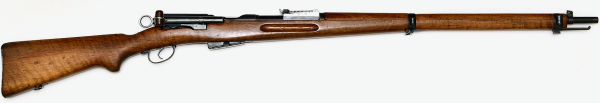Fabriqué à 130 000 exemplaires environ, ce fusil reprend les différentes caractéristiques du fusil 1896/11. Il est doté d’un canon long de 780 mm à 4 rayures au pas de 270 mm et devient l’arme de dotation de l’armée suisse. La poignée semi-pistolet est aménagée d’origine.