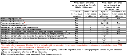 La fabrication et la transformation d’une arme nécessitent d’être titulaire d’une AFCI (Autorisation de Fabrication, de Commerce et d’Intermédiation). Et l’arme fabriquée ou transformée en France doit obligatoirement être éprouvée ou ré-éprouvée.