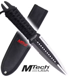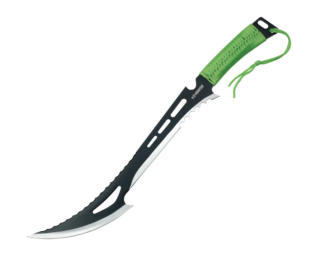 - A1-13° - « Couteaux, coutelas et machettes, à lame fixe disposant d’un côté tranchant, d’une extrémité pointue, d’un côté dentelé et présentant en complément soit plus d’un trou dans la lame, soit plusieurs pointes acérées ; »
