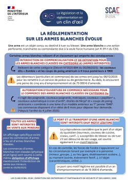 Enfin, ce décret du 6 septembre 2025 rend obligatoire pour tous les professionnels l’affichage de l’interdiction de vente des armes blanches aux mineurs.