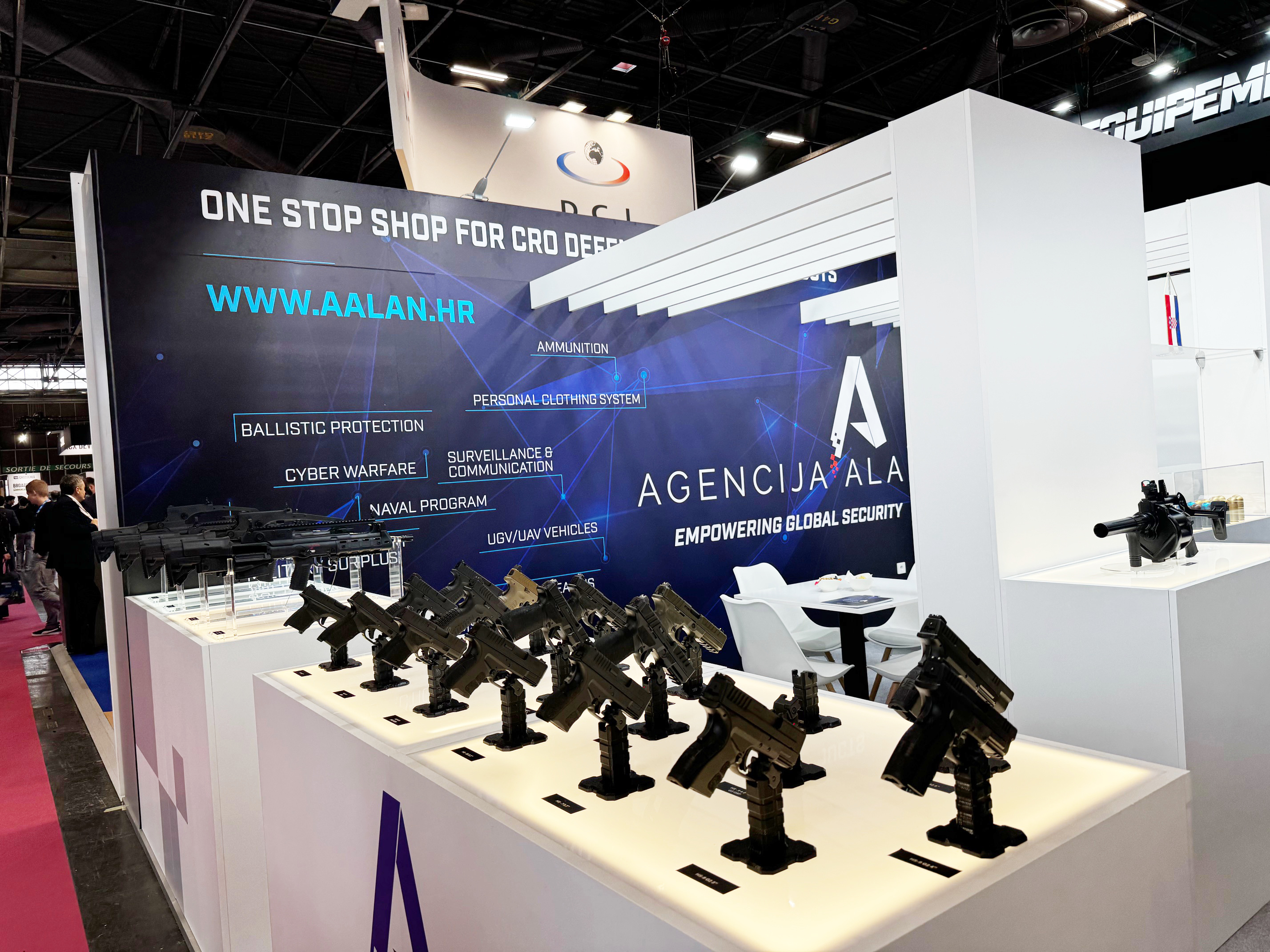 Dans un contexte de réarmement général en Europe, plusieurs véhicules blindés étaient également exposés par des sociétés comme KNDS, qui fournit aux forces de l’ordre des véhicules blindés tels que le Griffon.