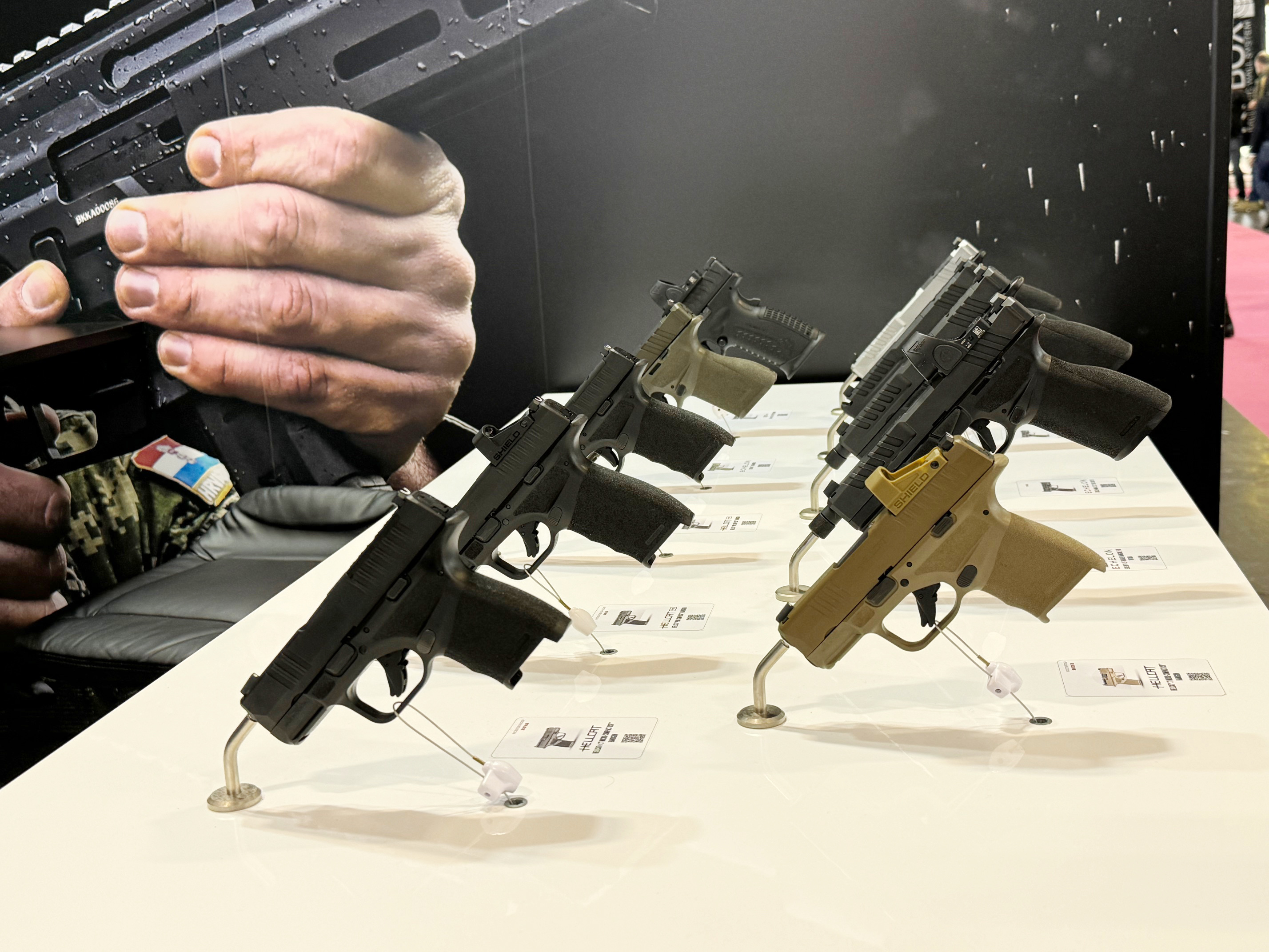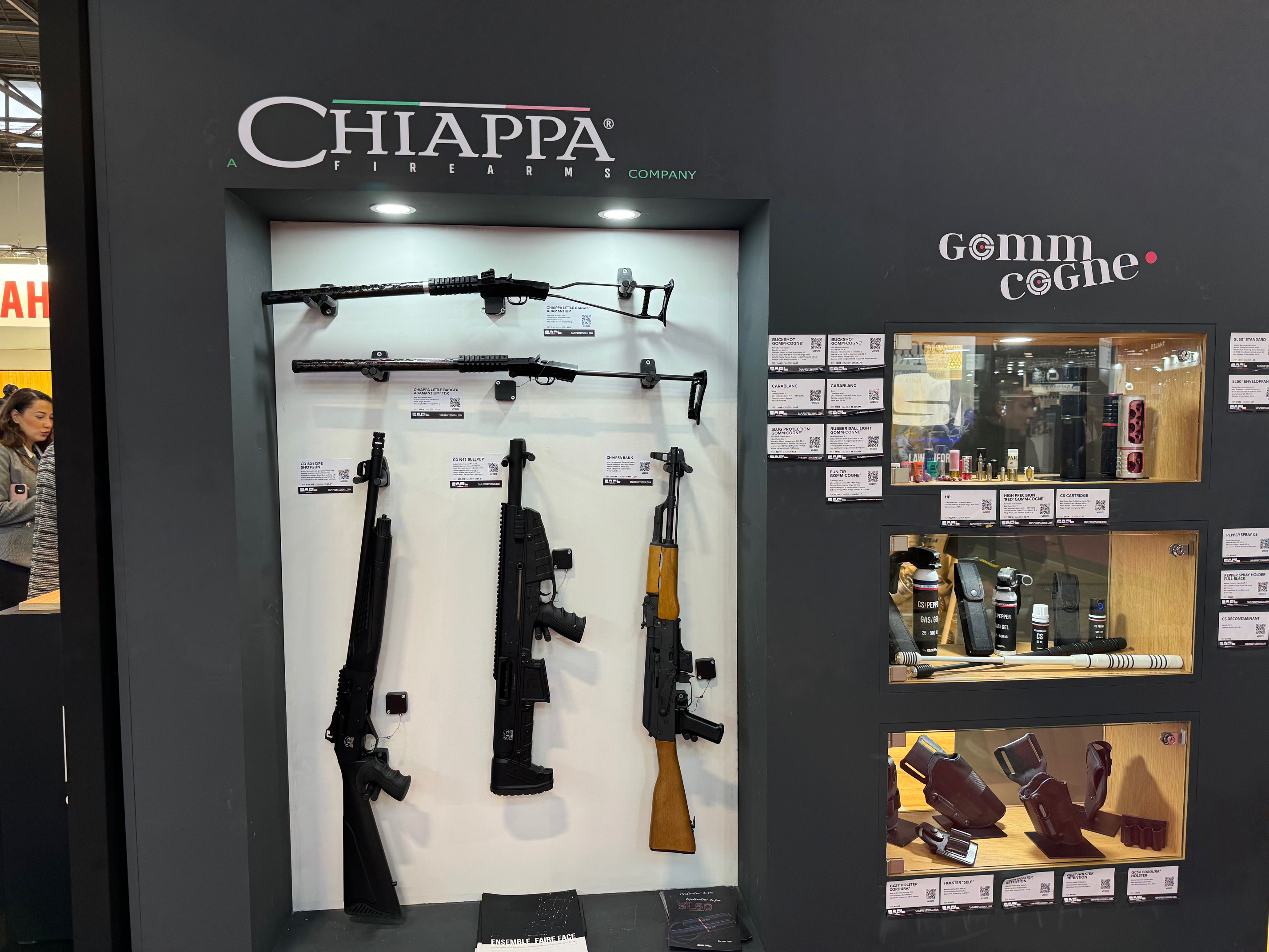 Les pistolets semi-automatiques dominaient largement le secteur des armes de poing. Seul le stand de Smith & Wesson présentait encore un ou deux revolvers. Chiappa, de son côté, mettait en avant son modèle Rhino.