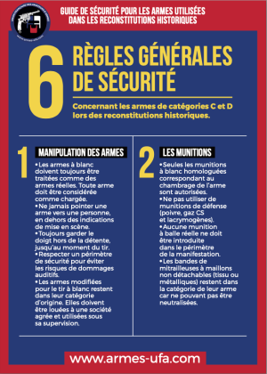 – Les armes à blanc doivent toujours être traitées comme des armes réelles. Toute arme doit être considérée comme chargée.