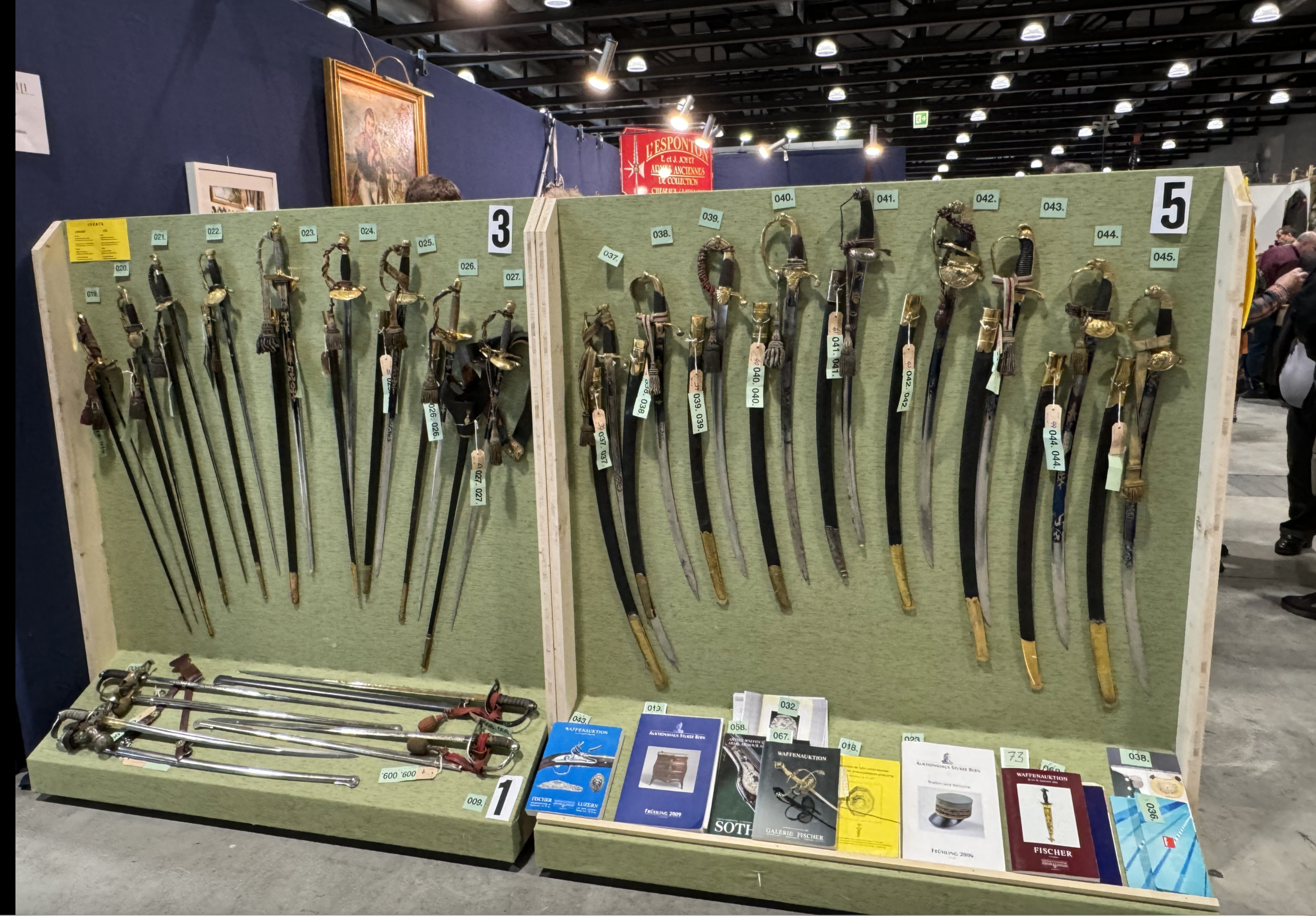 Pour compléter l’offre faite au public, une vente aux enchères était organisée le samedi après-midi dans une salle aménagée dans l’enceinte de la bourse. Elle avait pour objet la dispersion de la riche collection d’armes blanches d’officiers suisses de Francis Villard, collectionneur et fin érudit.