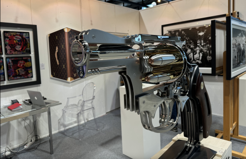Cette année les organisateurs avaient invité le sculpteur Jean Octobon, connu pour ses œuvres monumentales. Il exposait particulièrement un pistolet et deux revolvers aux formats XXXXL. Des œuvres de sa série BANG-BANG, inspirées par les films de sa jeunesse.