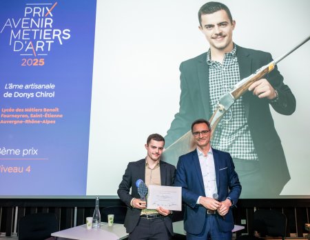 Le Prix Avenir Métiers d’Art est soutenu par le ministère de la Culture, la Fondation Rémy Cointreau et la Banque Populaire. Le prix a été remis à Donys par M. Harold Élie, directeur des marchés professionnels de la Banque Populaire.