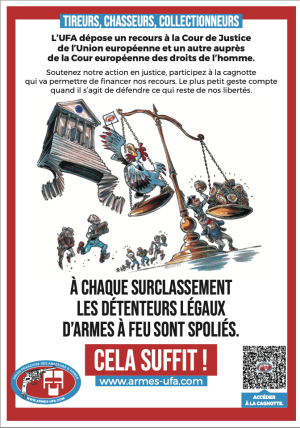 A ce jour, sur les 3 à 4 000 000 de détenteurs légaux d’armes à feu, seuls 607 donateurs et une association, l’ARPAC, ont suivi l’UFA et ont contribué à ce projet destiné à préserver l’avenir des tireurs sportifs, des chasseurs et des collectionneurs.