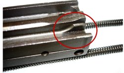 Culasse vue de dessous, l’excroissance actionnant le connecteur a été fraisée. La culasse était donc d’origine militaire.