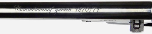 Le canon porte l’inscription « Commémoratif guerre 1870-71 », tandis que la bride postérieure de la crosse arbore la marque de l’UFA. Le numéro de série est discrètement gravé sous le talon de crosse.