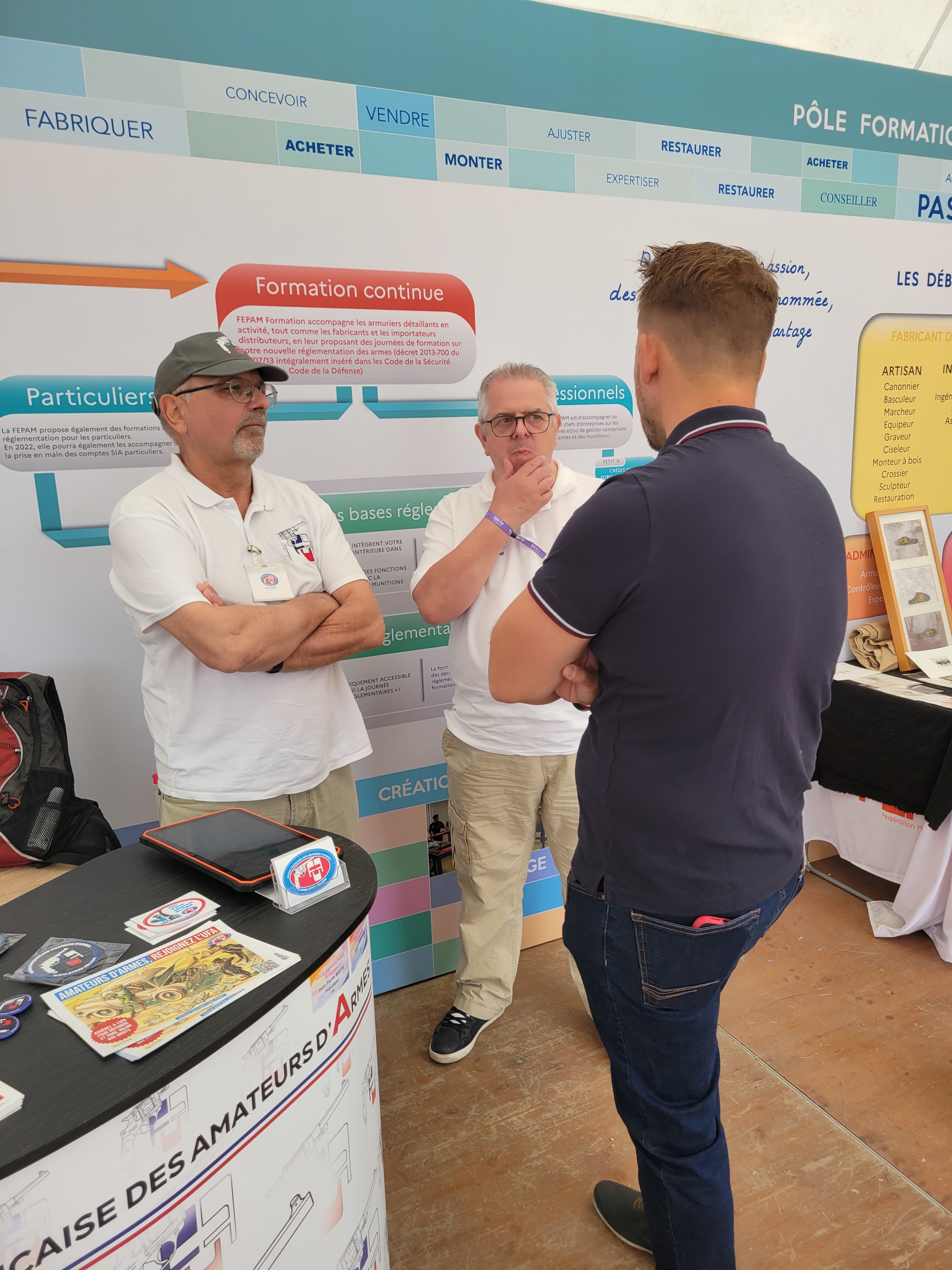 L’UFA était hébergée sur le stand de la FEPAM avec plusieurs partenaires de l’écosystème du monde des armes comme les écoles d’armurerie de Saint-Etienne et de Liège sous le patronage du SNAFAM.